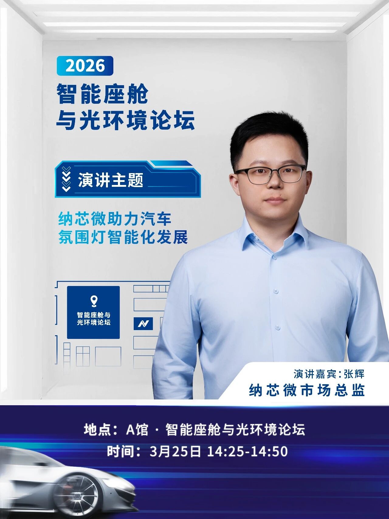 展会同期,纳芯微还将参与2026智能座舱与光环境论坛演讲,带来内饰氛围灯应用的技术分享,期待您的到来!