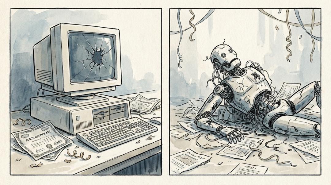 报道摧毁信心,在随后的1年的时间里,纳斯达克指数跌了80%,无数"账面上的百万富翁"变得一文不名。