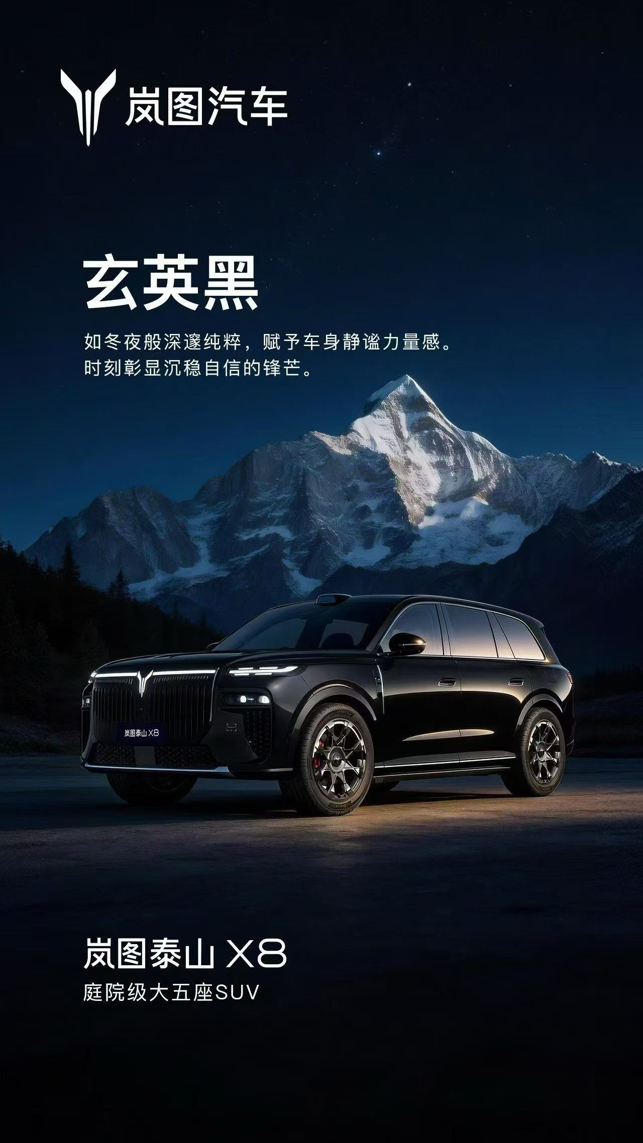 IT之家 4 月 6 日消息,今天(4 月 6 日)上午,岚图汽车公布了岚图泰山 X8 六款车色:玄英黑、杜若白、宸星灰、星光银、碧玺红、远山蓝。据悉,泰山 X8 预计将于 2026 年上半年正式上市。