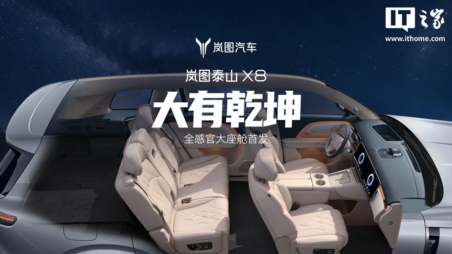 IT之家 4 月 9 日消息,岚图泰山 X8 新车目前已开启预热,新车定位“庭院级大五座 SUV”,预计上半年上市。