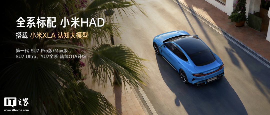 IT之家注意到,新一代 SU7 交付即搭载 Xiaomi XLA 认知大模型,并在第一个版本实现了语音控车、商场地库车位级领航等功能。同时小米汽车表示,会陆续为第一代 SU7 Pro / Max、SU7 Ultra、YU7 全系提供 OTA 升级。