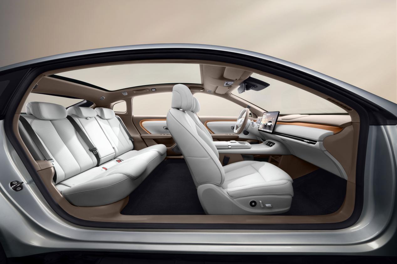 外观方面,长安启源 A06 整体没有太大改变,车头采用弧线型贯穿灯带,采用扶光美学设计语言,搭配 236 颗 LED 光源,支持自定义灯语、流水灯等效果,车顶弧线较为流畅,配备无边框后视镜、无边框车门等时尚设计,长宽高分别为 4885*1916*1496mm,轴距 2922mm。