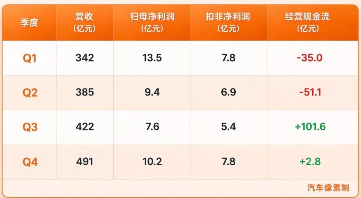 深蓝2025年收入502亿元,亏损收窄到9亿元,随着规模增长,已经有改善。但经营现金流从2024年的正45亿元转为负21亿元。收入涨了、亏损少了、现金流却恶化了,说明增长可能伴随着库存或账期的增加。