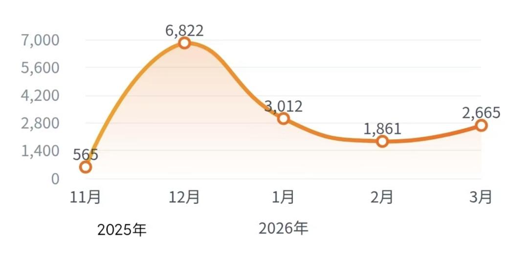 2025年4月—2026年3月,东风日产N7销量变化
