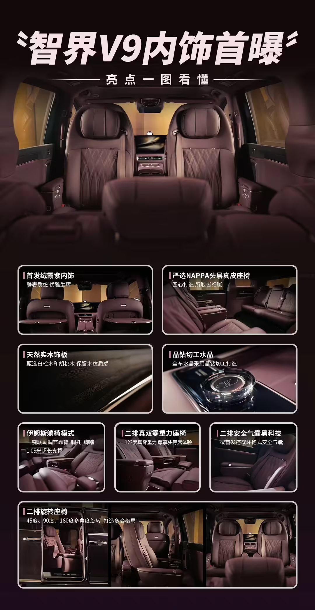 此外,据相关媒体爆料,智界 V9 预计还将搭载车载制氧机、夏季恒冷车载冰箱等创新科技配置,进一步强化其高端 MPV 的市场定位与用户的豪华出行体验。