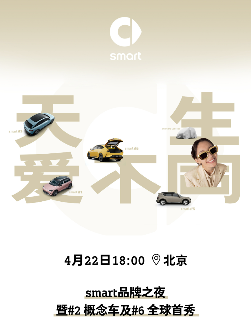 IT之家 4 月 16 日消息,smart 今日宣布,smart 品牌之夜暨精灵 2 号概念车及精灵 6 号全球首秀将于 4 月 22 日 18:00 举行。
