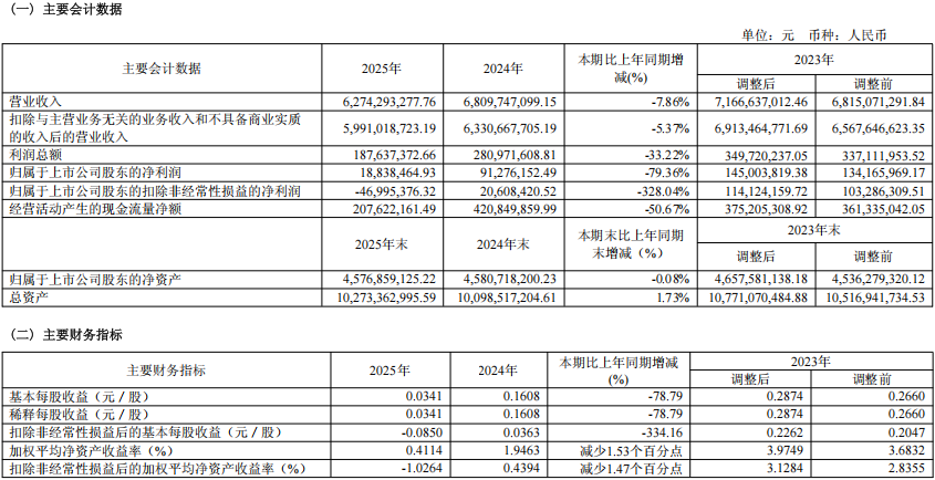 2.东风科技2025年实现营收62.74亿元,净利润同比下降79.36%