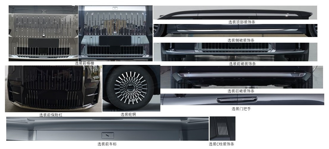 规格方面,新车搭载 255/50R19、265/45R20 轮胎,前轮距 1702mm、后轮距 1714mm,接近角 / 离去角分别为 14/18 度,三元锂电池由时代吉利(四川)动力电池有限公司生产,ABS 由博世(苏州)生产,可选装前格栅、前保险杠、轮辋、顶部装饰条等。