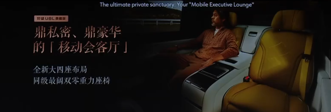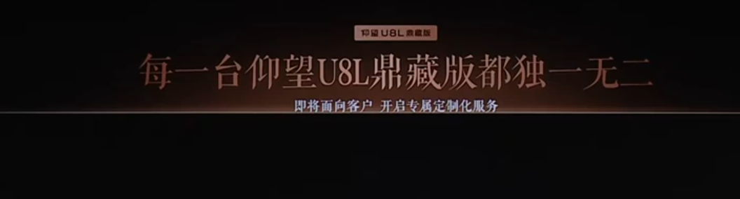 仰望 U8L 鼎藏版采用四座布局,配有“同级最阔双零重力座椅”,即将面向客户开启专属定制化服务。