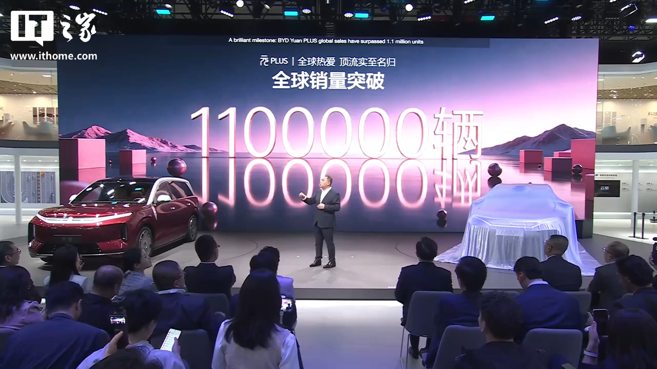 IT之家 4 月 24 日消息,在今日的发布会上,比亚迪宣布旗下元 PLUS 全球累计销量突破 110 万辆,第三代元 PLUS 今日正式亮相。