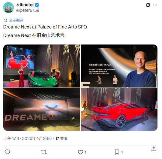 IT之家 4 月 28 日消息,当地时间 4 月 27 日,追觅在美国召开 DREAME NEXT 全球发布会。追觅星空计划全球首发全新一代“火箭车”Nebula Next 01 JET Edition(似乎是在此前公布的概念车 Nebula Next 01 上加装助推器)。