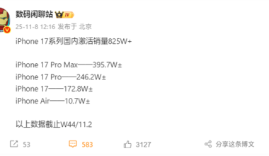 iPhone 17系列国内激活销量超825万:Pro Max几乎独占一半