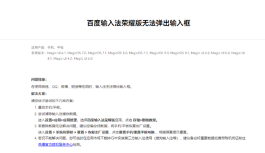 荣耀输入法在使用微信等应用时无法弹出输入框,官方给出重启、清除缓存、恢复出厂设置等解决方案,若仍无法解决可安装第三方输入法或前往荣耀官方授权服务中心检测。