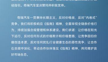 奇瑞汽车:全面审视全链条价格行为,持续加强合规管理和体系建设