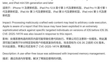 苹果iOS26.2修复25个漏洞 谷歌、字节跳动、阿里巴巴等参与“救场”