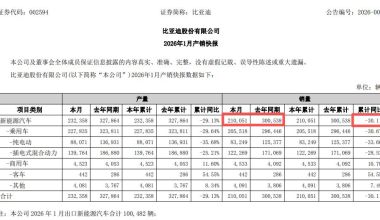 比亚迪:2026年1月新能源汽车销量同比下降30.11%