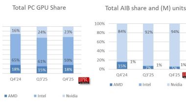 JPR 数据:AMD 整体 PC GPU 市占在 2025Q4 走高,但独显占比下滑