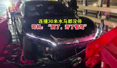 司机高速犯困开“智驾”,连撞 30 米水马都没停
