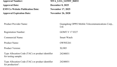 一加Watch 4手表现身EMVCo认证数据库,有XL905、XL907两个型号,或为Pro版或大小尺寸。沿用骁龙W5 Gen 1芯片,搭载1.5英寸AMOLED屏,电池646mAh,防水等级升至IP...