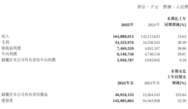 赛力斯:2025年营业收入1648.88亿元,同比增长13.63%。