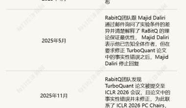 谷歌TurboQuant新算法论文引发学术争议,苏黎世联邦理工学院博士后高健扬指出谷歌论文存在学术问题,包括回避相似性、错误描述理论结果等。双方进行了多轮沟通,但谷歌未彻底修正错误。