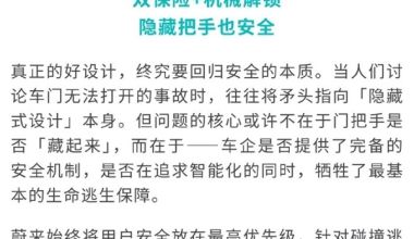 蔚来回应ES9仍用隐藏式门把手:新规仍未生效,隐藏式把手完全合规