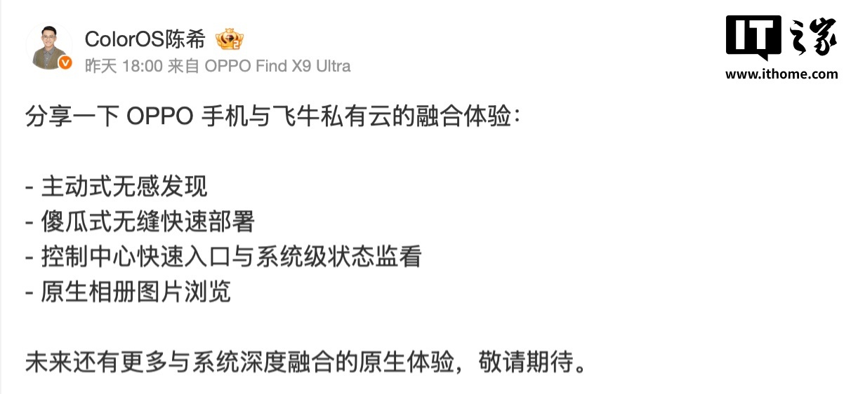 陈希展示OPPO与飞牛私有云融合体验:主动式无感发现