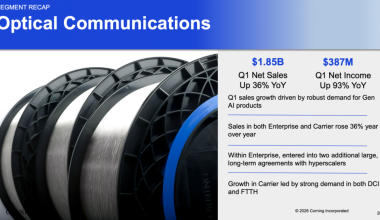 康宁2026年Q1光通信收入18.5亿美元,同比增长36%