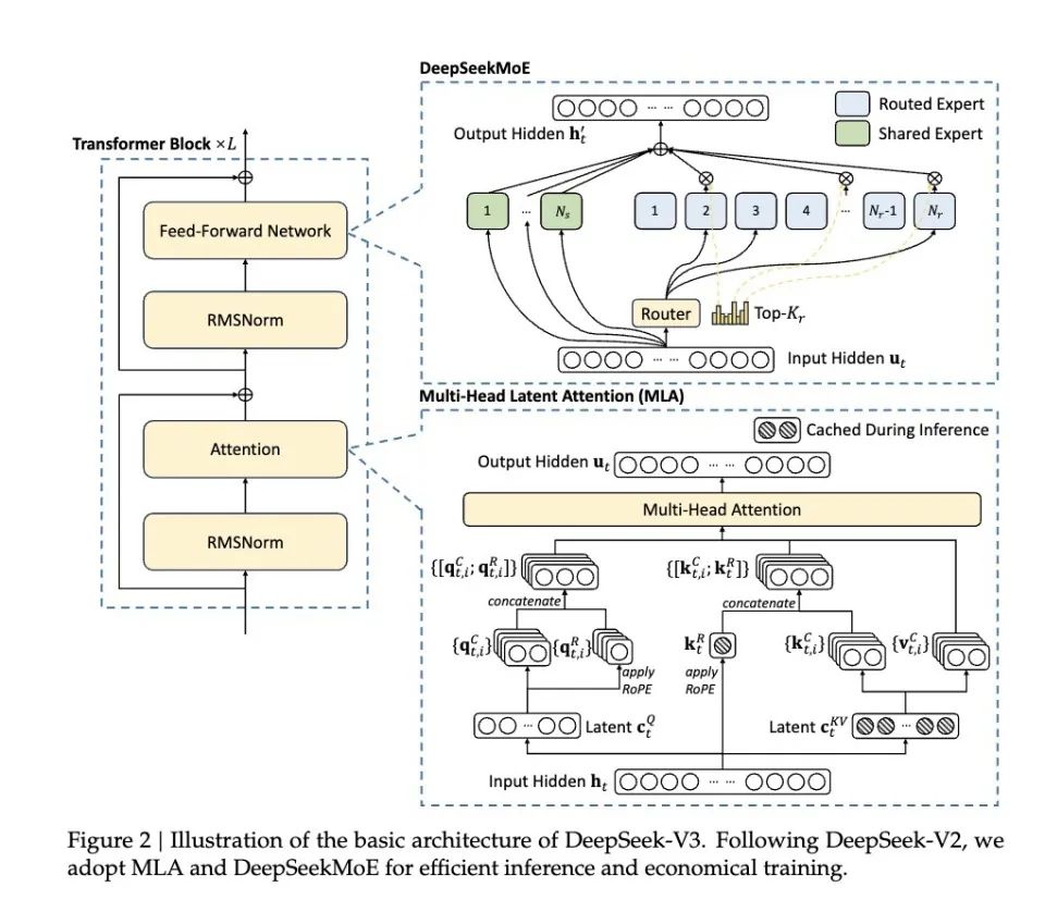 MLA方法是从DeepSeek V2开始就采用的方法,本次只是进行了优化调整。而在DeepSeek-V3里引入了一种 FP8 混合精度训练框架,并首次在超大规模模型上验证了其有效性。