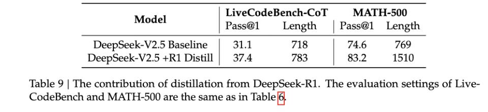 除了在数据选择上更多引入了专业数据之外,还要提到后训练过程中,DeepSeek对R1的蒸馏使用。这一方面提升了模型的能力,也让它有点偏科。