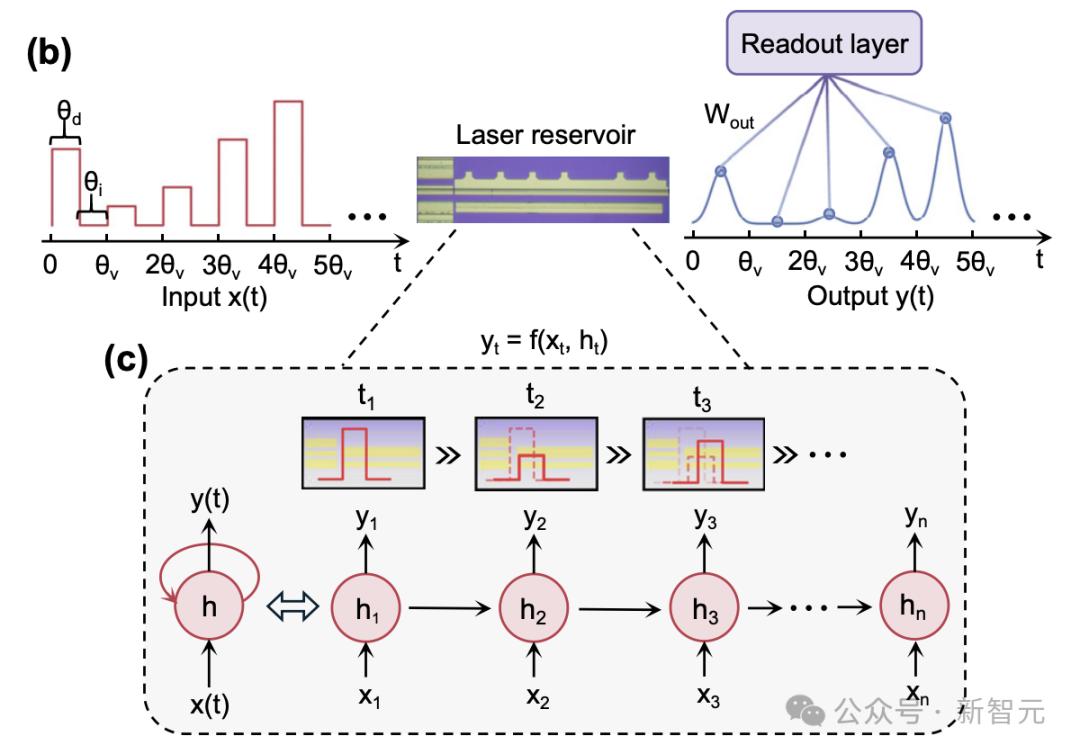 最新研究中,作者选择让激光梯级神经元充当激光储层,来执行储层计算。在输入层中,输入信号被编码为注入激光储层的电脉冲。