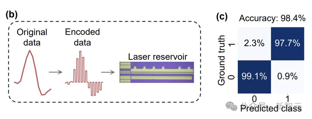 港中文研究小组负责人Chaoran Huang表示,「激光梯级神经元突破了当前光子脉冲神经元的速度限制,我们构建的一个储层计算系统(reservoir computing system),在模式识别和序列预测等AI任务中展现出卓越的性能」。