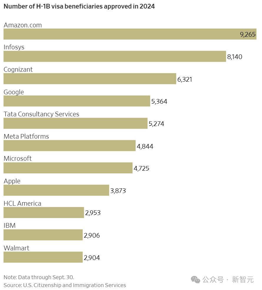 根据USCIS的数据,亚马逊、谷歌、Meta和微软等科技大厂,都是H-1B签证「大户」。