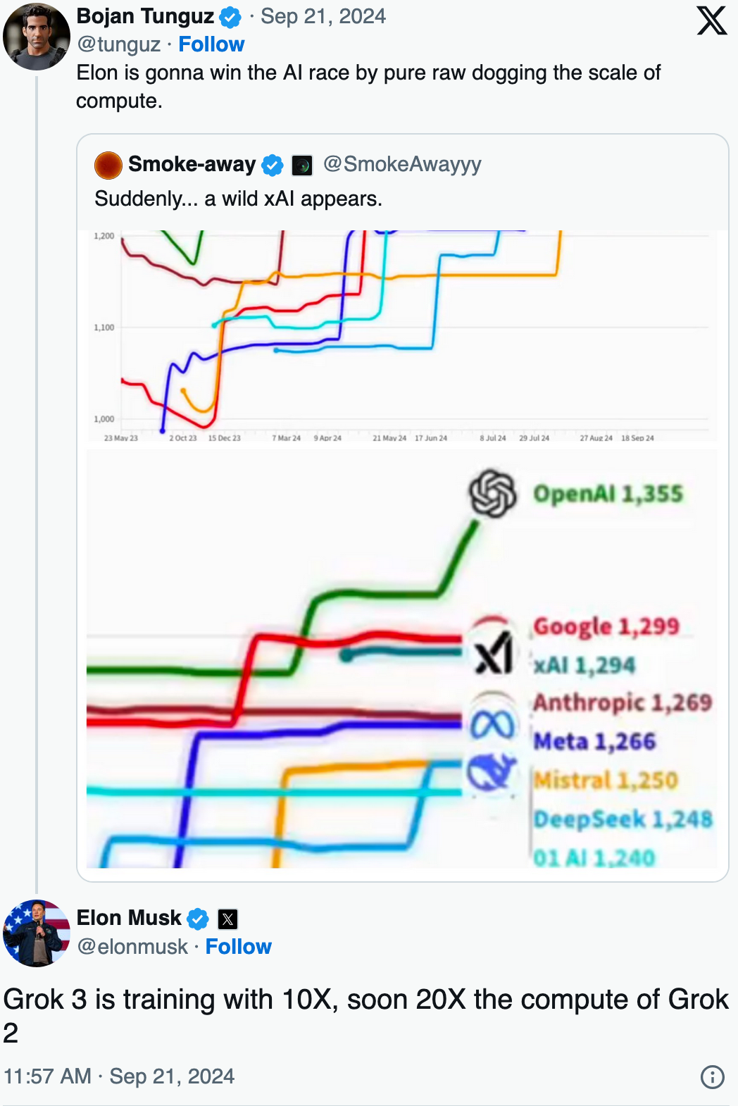 马斯克本人也在一次采访中暗示了这一点:当被问及Grok 3是否会达到业界领先水平时,马斯克回答说:“希望如此,这是我们的目标,但我们可能会失败。”