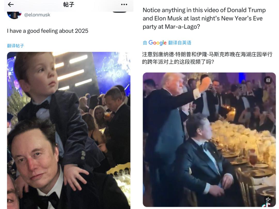 在海湖庄园的一间小屋里,这里举行了一场盛大的新年派对,晚会群星云集,最引人注目的无疑是美国新总统特朗普和世界首富马斯克。在网络流传的一则视频里,马斯克被人们发现与特朗普一起热舞,后来他在社交媒体上这样写:“我对2025有很好的预感”。