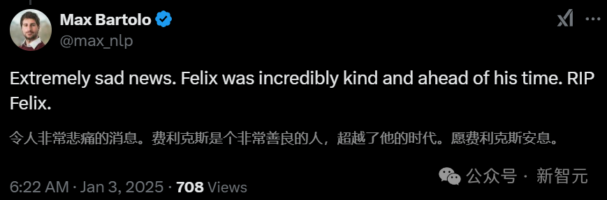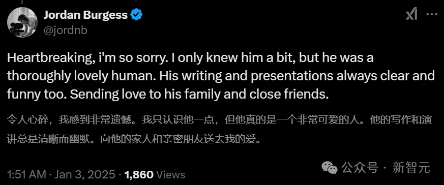 消息传来,他的 AI 圈好友无不表示悲痛和难过。