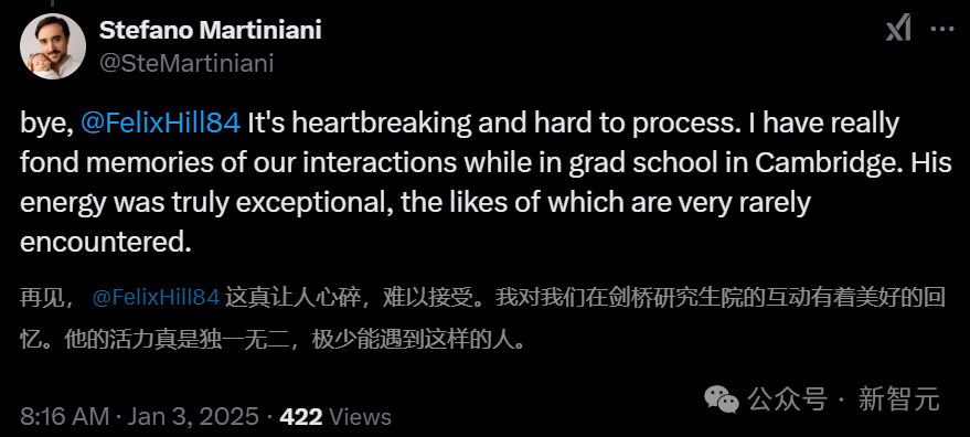 谷歌 DeepMind 研究科学家 Felix Hill,于 2024 年 12 月 5 日英年早逝,年仅 41 岁。