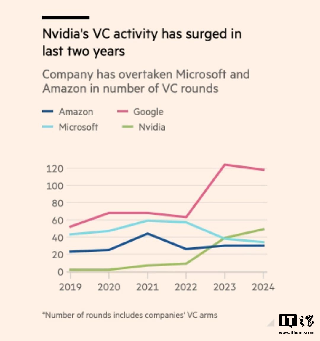 IT之家 1 月 3 日消息,金融时报昨日(1 月 2 日)发布博文,报道称英伟达公司在 2024 年的投资总额达 10 亿美元(IT之家备注:当前约 73.22 亿元人民币),参与 50 轮融资和多起企业收购,显著高于 2023 年的 8.72 亿美元和 39 轮融资。