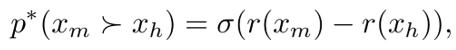 表示偏好机器修改文本而非人类文本的概率,这个概率随着奖励差值