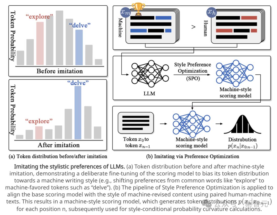 近期,来自复旦大学、华南理工大学、武汉大学以及UCSD、UIUC等机构的研究团队提出了创新的检测框架ImBD(Imitate Before Detect),从「模仿」的角度切入:通过先学习和模仿机器的写作风格特征(如特定词汇偏好、句式结构等),再基于这些特征进行检测。
