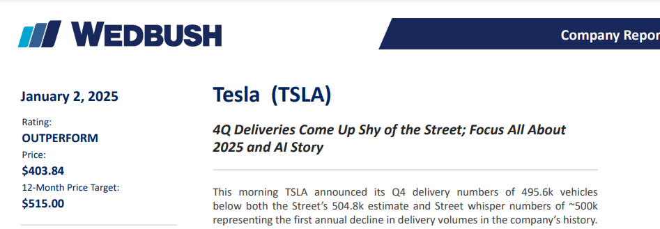 其中,Wedbush资深股票分析师Dan Ives可谓是特斯拉的“死忠粉”,他仍对特斯拉在2025财年加速交付增长的能力充满信心。