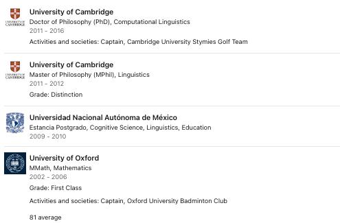其实,Felix Hill 最初并非从事 AI 研究,他本科就读于牛津大学,主修的是数学。随后,他在剑桥大学获得了语言学硕士学位和计算语言学博士学位。