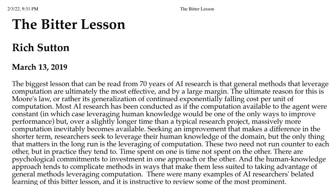 (http://www.incompleteideas.net/IncIdeas/BitterLesson.html)