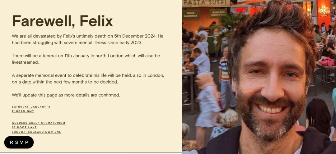 Felix Hill 的葬礼将于 1 月 11 日在伦敦北部举行,并将进行现场直播。据悉,自 2023 年以来,Felix Hill 一直饱受严重精神疾病的折磨。他曾深陷重度抑郁也有过严重的自杀倾向,也于离世前两个月对外发文称现在在 AI 行业工作的压力比以往任何时候都大。
