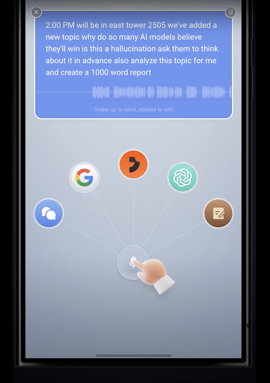 IT之家参考官方介绍,这款 J1 Assistant AI 助理软件最大特色是拥有一个音频输入按钮,用户可以通过按下按钮输入语音,之后即可将相关语音作为消息发送 / 发送至谷歌搜索引擎 / 发送至自家 AI 模型询问 / 发送至 ChatGPT AI 询问 / 作为新建备忘录。