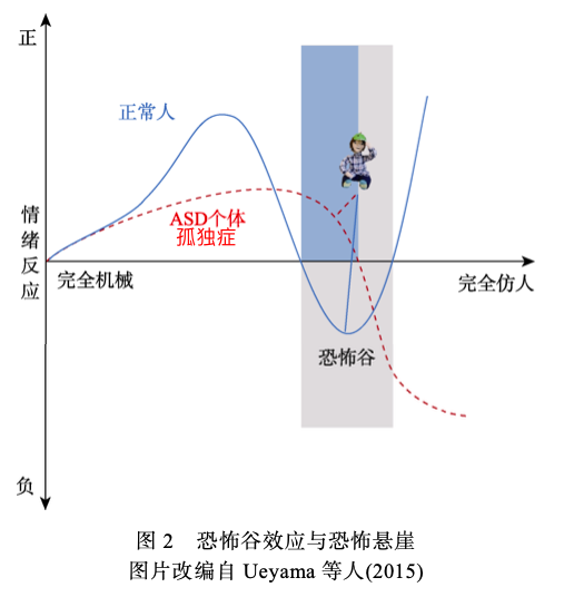 此外,普通人在面对仿人的社交机器人时会出现“恐怖谷”效应,也就是在机器人与人类相似但又不完全相同时,会引起人的不安全感,在机器人更加像人后逐渐缓解。对于孤独症人群来说,随着机器人越来越像人,情况更加恶化,研究者称其为“恐怖悬崖”。研究人员需要注意这种外观偏好。