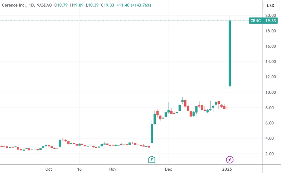 (赛轮思股价接近一个月翻了6倍,来源:TradingView)