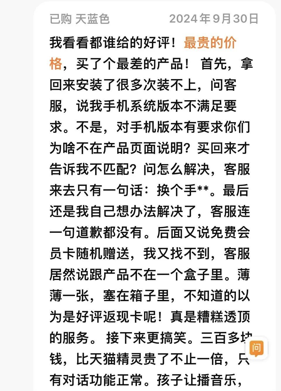 然而,玩具的AI对话功能也是“见仁见智”的地方。有家长表示,AI玩具能回答孩子的“十万个为什么”,很省心;但也有家长认为,目前所谓的AI功能还配不上这个价格。Haivivi(跃然创新)的一款佩戴式AI玩具的评论区里,有消费者表示,玩具的价格比天猫精灵还贵了不止一倍,但只有对话功能正常使用,播放音乐和讲故事的功能都不能满足孩子需求。