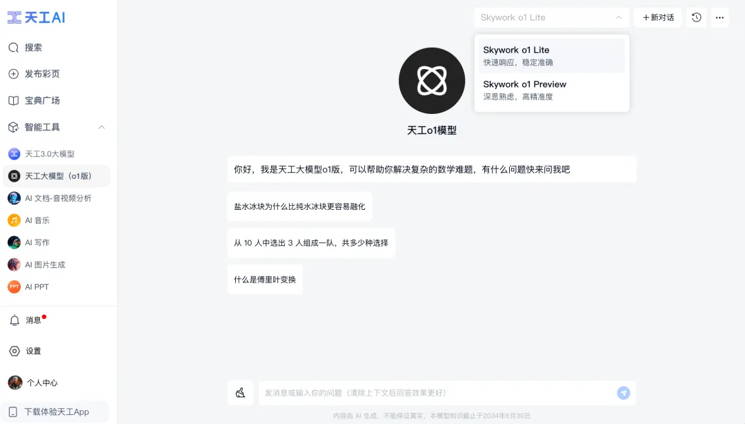 IT之家 1 月 6 日消息,昆仑万维集团今日宣布,天工大模型 4.0 o1 版和 4o 版同步上线,全量登陆网页端和 App 端,可免费使用。