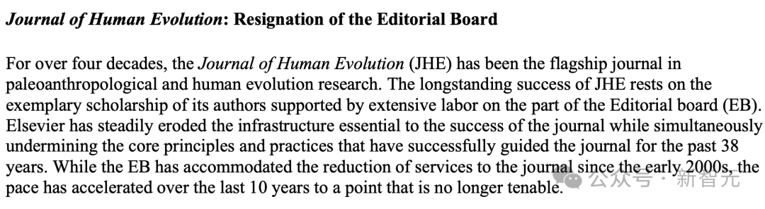 最近,这场震动学术界的「离职潮」引来一大波关注:爱思唯尔旗下顶尖期刊《人类进化杂志》(JHE)的编辑们,除1人外集体辞职。